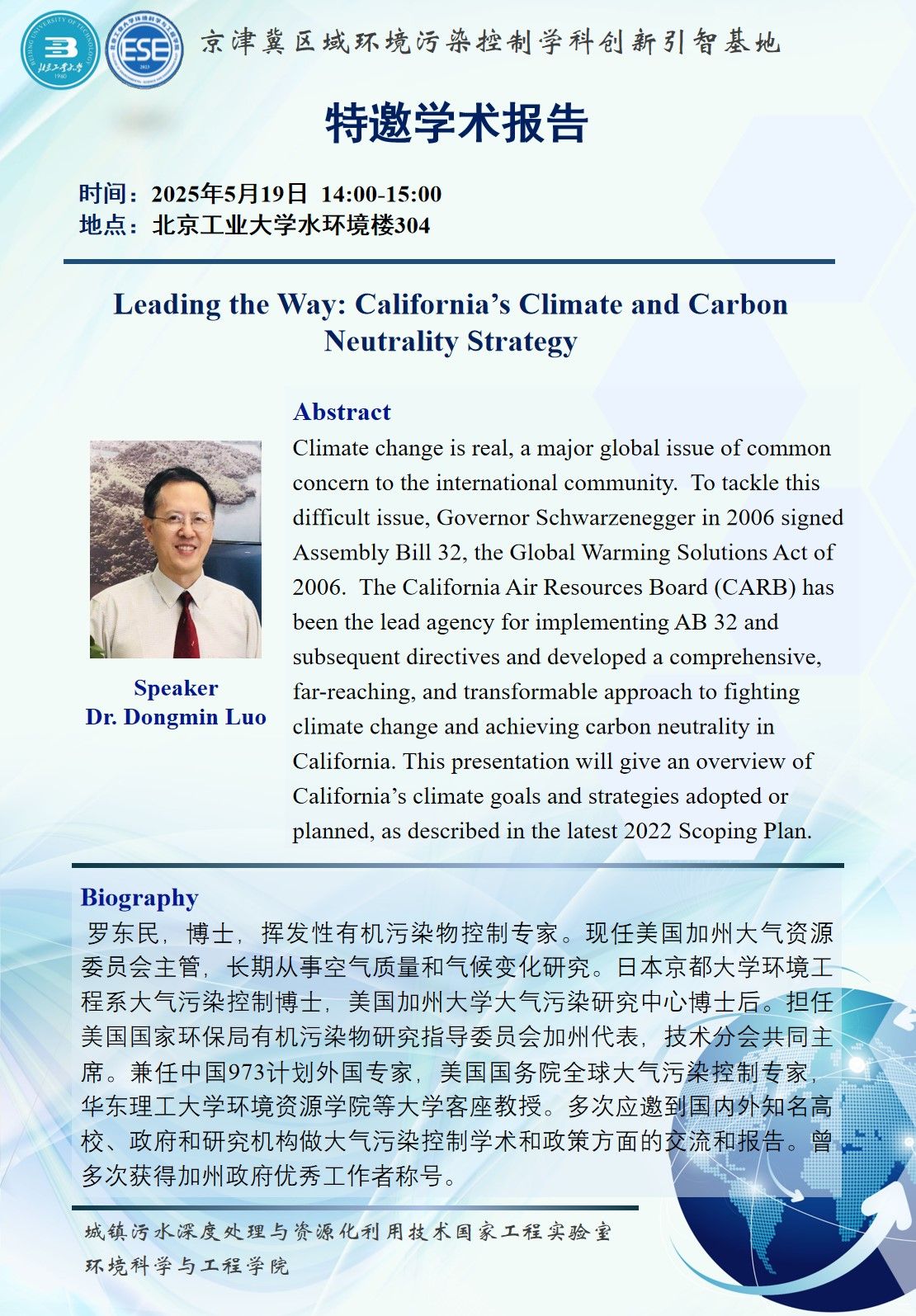 【环境|学术报告】Leading the Way: California’s Climate and Carbon Neutrality Strategy