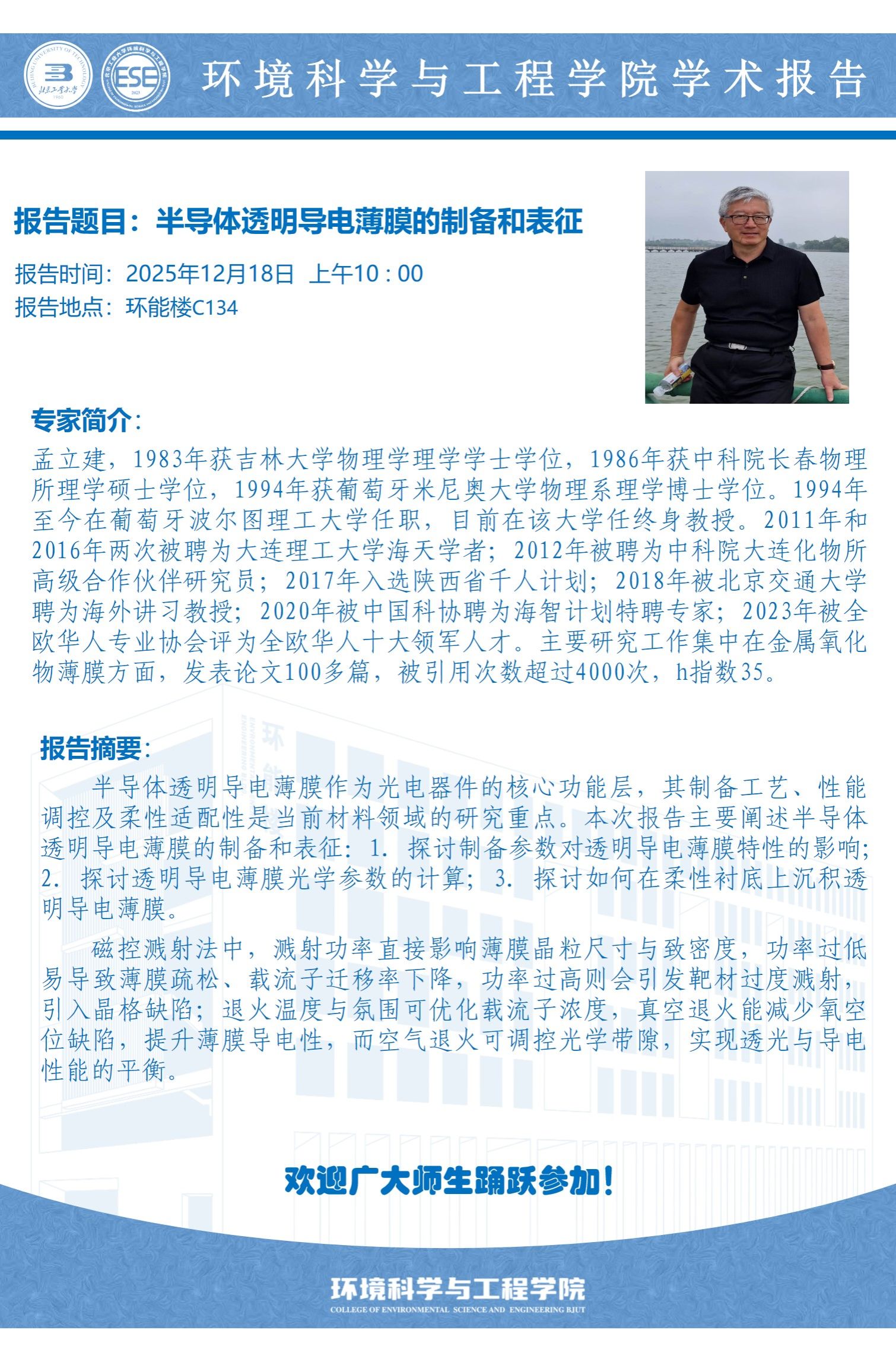 【环境|学术报告】半导体透明导电薄膜的制备和表征